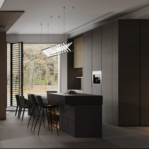 Optima Elegante Loft Artístico MDF Panel Brillante Laminado Laca Acabado Cocina Almacenamiento Armarios de Cocina