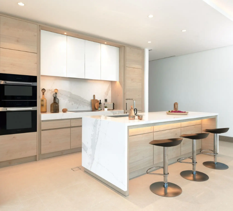 Gabinetes de cocina de chapa de madera con acabado de melamina y núcleo de contrachapado elegante Optima