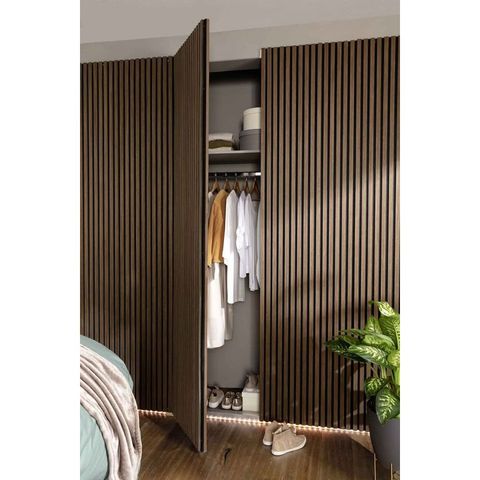 Tủ quần áo góc tối ưu với móc treo xoay và dải đèn LED cho tủ quần áo tiết kiệm không gian nhỏ