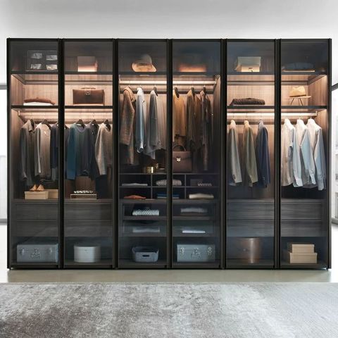 Tủ quần áo theo phong cách Optima Scandinavian với cửa kính và bản lề đóng êm cho tủ quần áo gia đình tối giản